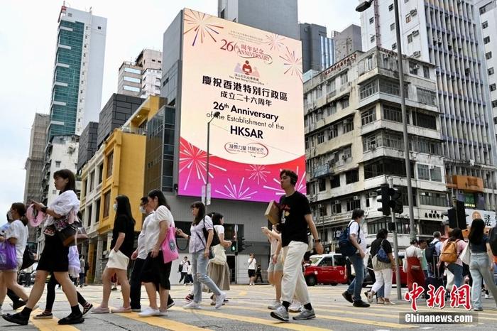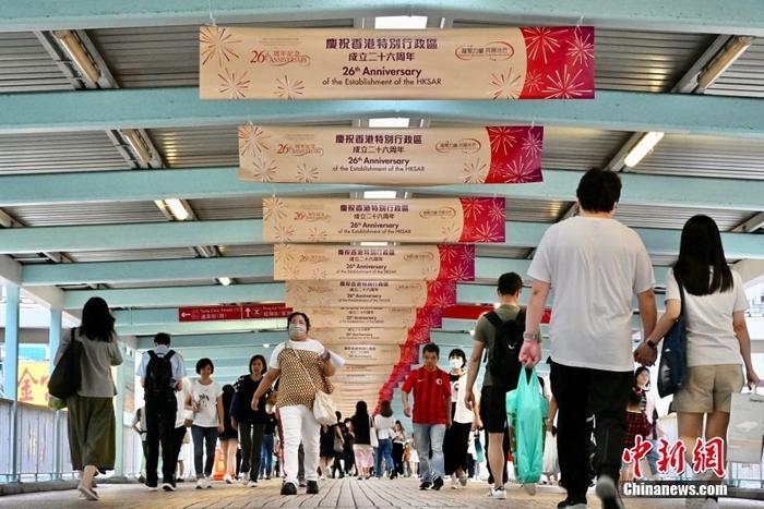 香港多區(qū)街頭慶回歸祖國26周年氣氛濃